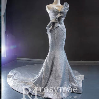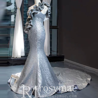 Haute Couture Silver Mermaid Prom Dress Sequin Pageant Gown