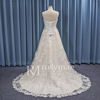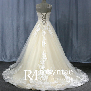Sweetheart A Line Bridal Wedding Dress with Floral Lace Appliqués