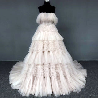 Tiered Ruffle Ruched Wedding Dress Formal Prom Gown
