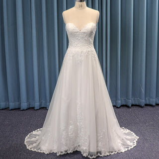 Strapless A-line Sweetheart Tulle Wedding Dress with Lace Bodice