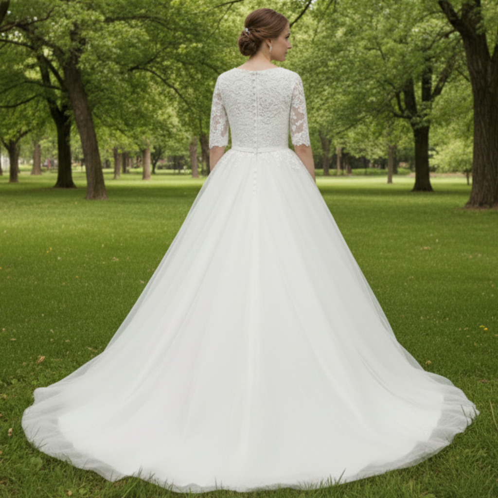 Vintage Half-Sleeve Scoop A Line Tulle Wedding Dress