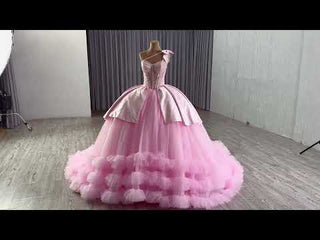 Ruffle Blush Pink Ball Gown Quinceanera with Off the Shoulder