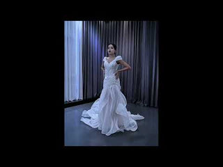 Vneck Vintage Cap sleeve Mermaid Wedding dress with Ruffled Skirt
