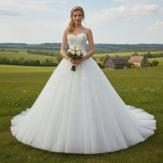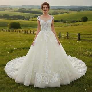 Every bride deserves to feel like a princess on her wedding day, and a ball gown dress can make that dream a reality. The full skirt and regal silhouette evoke a sense of royalty, allowing you to channel your inner princess as you say "I do."