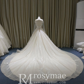 Gorgeous Off the Shoulder Ball Gown Floral Lace Wedding Dress for Elegant Bride