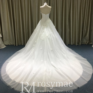 Elegant Sweetheart Neck Ball Gown Lace Wedding Dress Cathedral Train