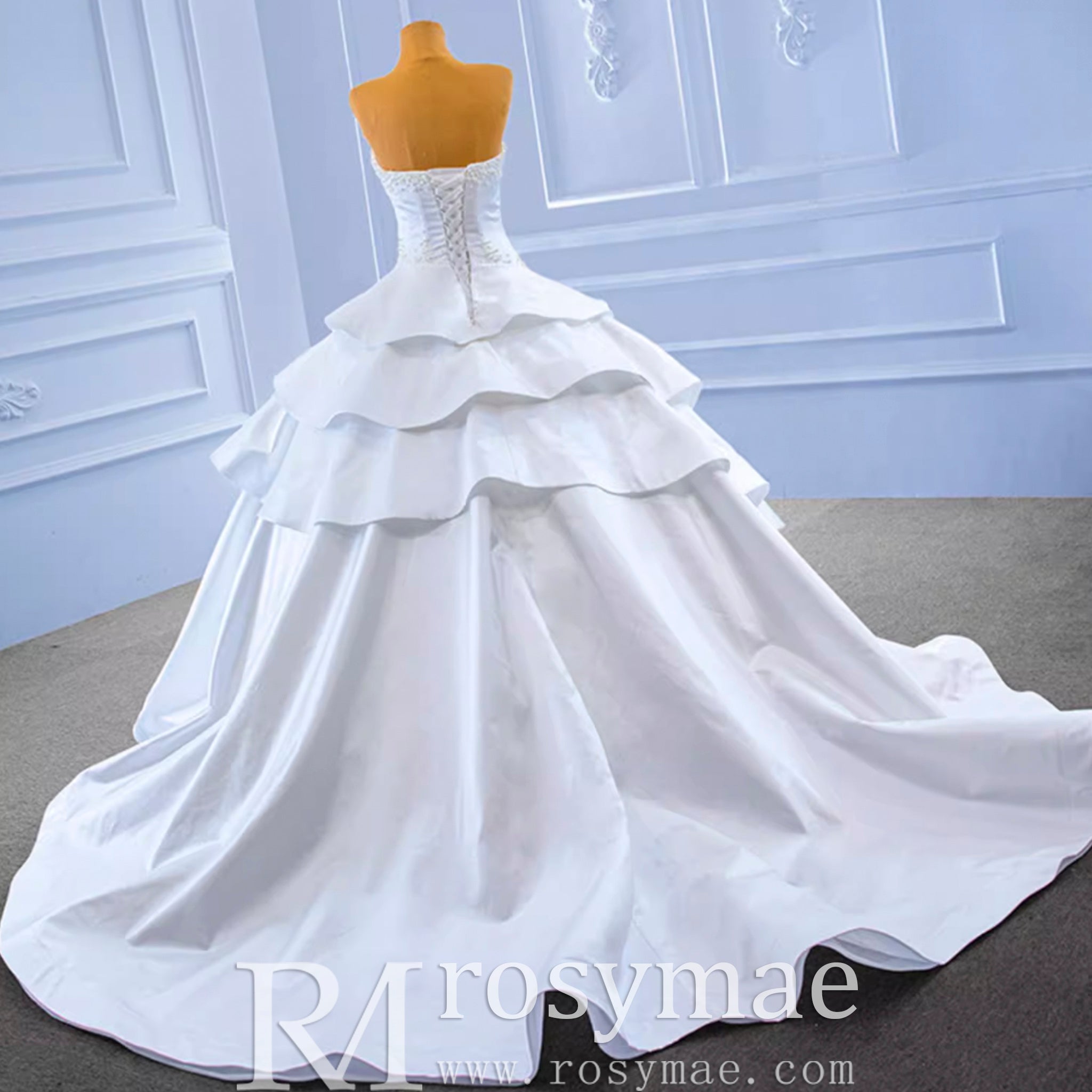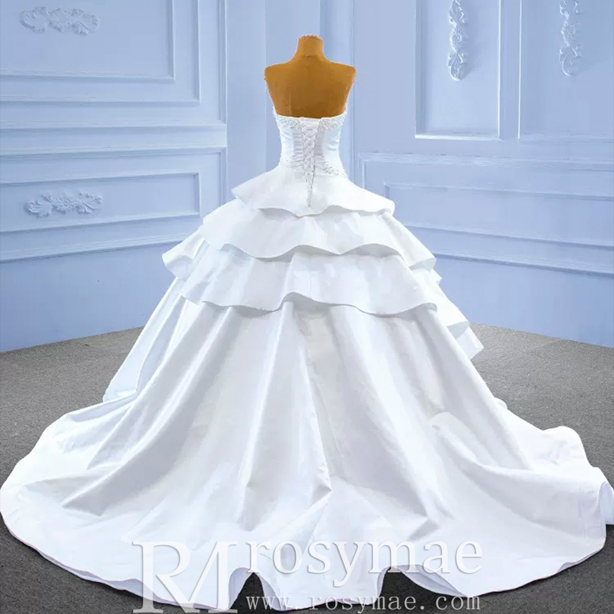 The supportive corset back ensures a flawless, comfortable fit for brides of all sizes, with inclusive plus sizing available to celebrate every silhouette. The classic modest design combines sophisticated coverage with royal grandeur, making it perfect for destination celebrations or royal-inspired weddings. From the exquisite craftsmanship to the luxurious satin fabric, every element works in harmony to make you feel like true royalty on your most special day.