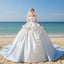 Long Sleeve Sparkly Baby Blue Wedding Dress with Square Neck