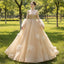 High Neck Three Quarter Sleeve Champagne Gold Prom Dress Evening Gown