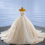 Elegant Champagne Gold Star Lace Wedding Dress with Off the Shoulder