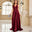 Women's Elegant Sequin Satin Prom Dress Evening Gown with Cap Sleeve