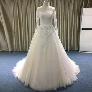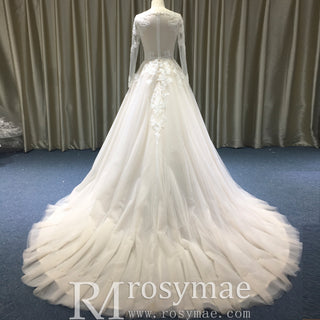 Elegant A-line Soft Tulle Lace Wedding Dress with Long Sleeve