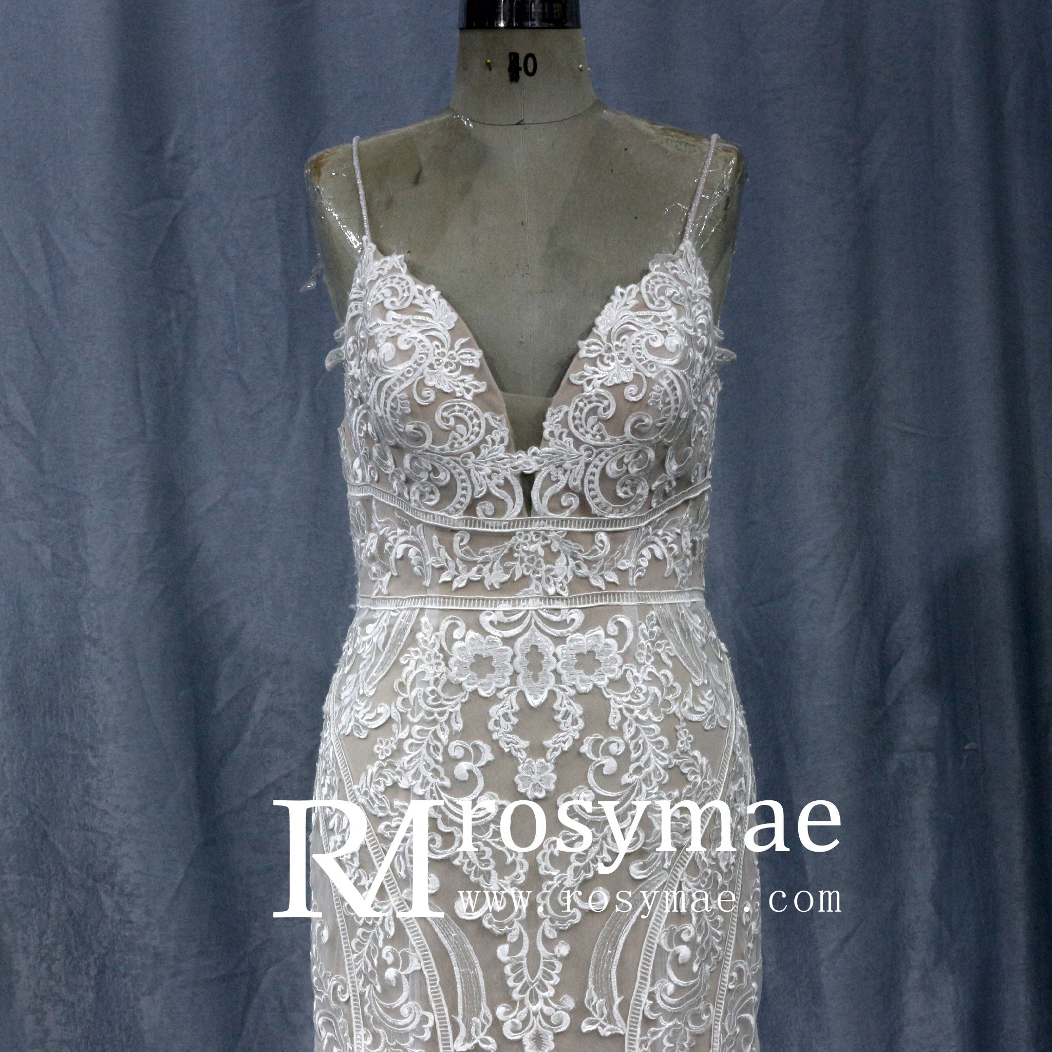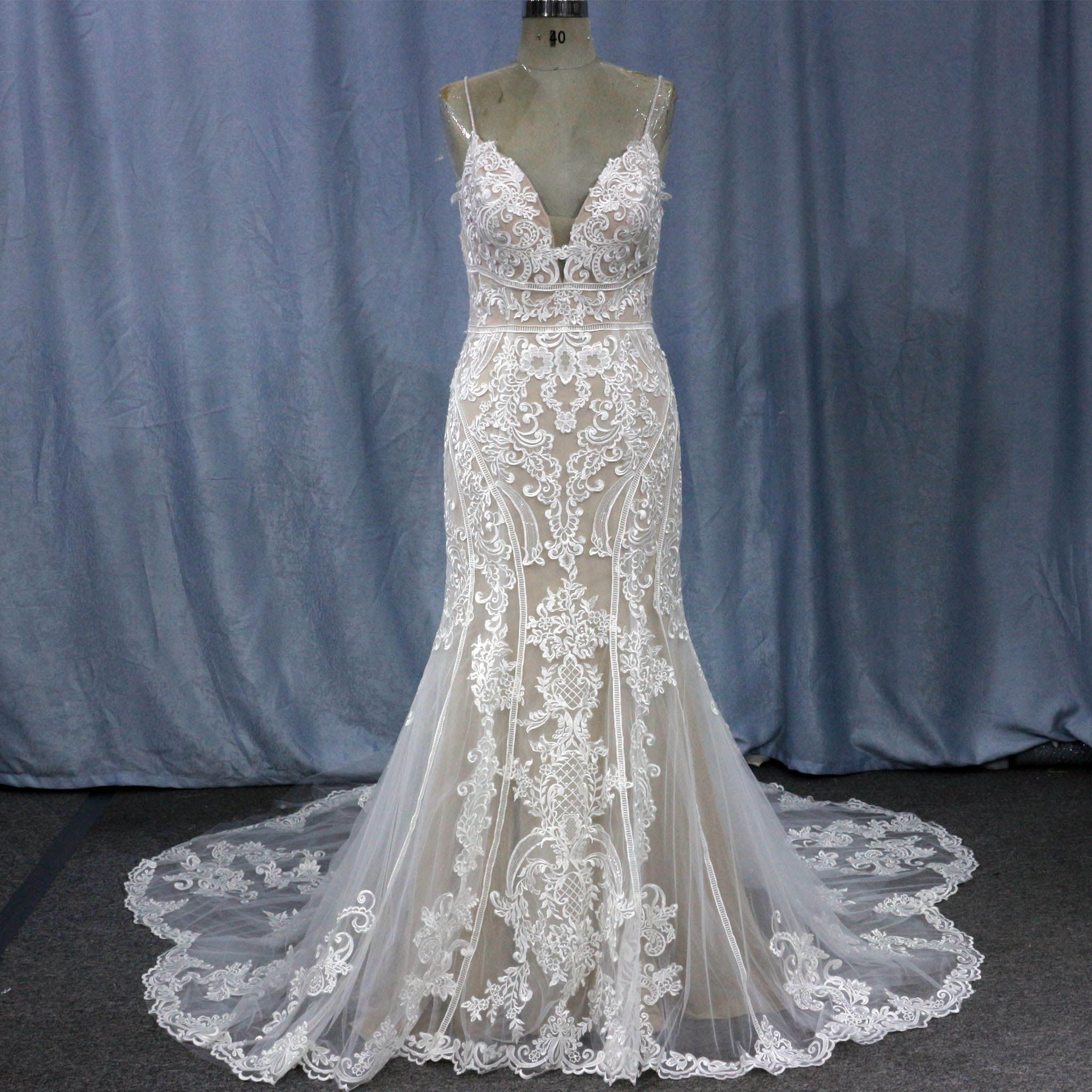 Mermaid Spaghetti Straps Beach Wedding Gowns V Neck Dresses