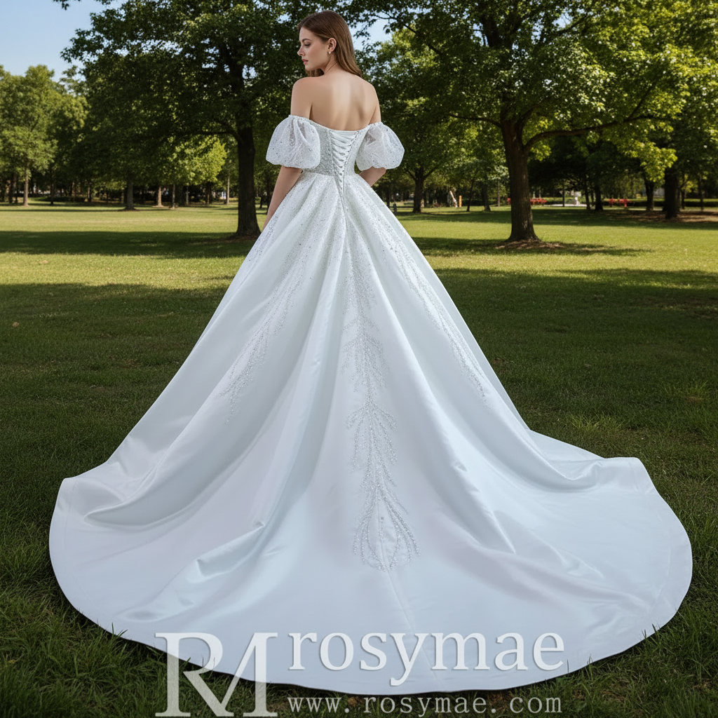 Embrace a perfect blend of timeless romance and contemporary design with this exquisite off-the-shoulder wedding dress. Meticulately handmade, the gown showcases delicate lace sleeves that offer both elegance and a hint of vintage charm. The fitted sheath silhouette gracefully highlights your figure, while the luxurious beaded bodice adds a radiant, modern sparkle. A truly innovative feature is the detachable skirt and train, allowing you to seamlessly transition from a formal ceremony look to a sleek reception style. This versatile, unique design ensures you experience both classic sophistication and modern versatility, making you feel effortlessly beautiful at every moment of your celebration.