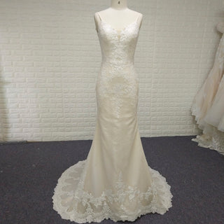Classic A-line Floral Lace Wedding Dress with Spaghetti Strap for Women