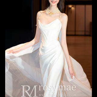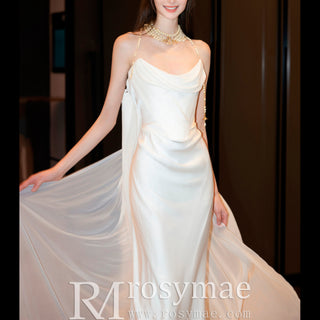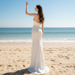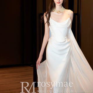 Discover a beautiful blend of classic style and modern elegance with this stunning scoop neck wedding dress. With its sleek silhouette, detachable cape, and perfect beach weddings look, you'll shine in this timeless piece!