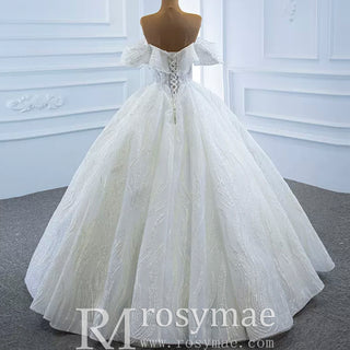 Elegant Classic V-neck Sparkly Tulle A-line Plus size Wedding Dress