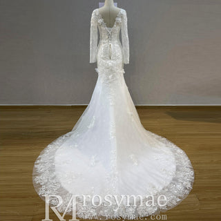 Floral Lace Mermaid Wedding Dress with Off the Shoulder Long Sleeve