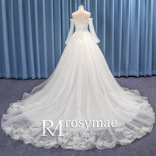 Finding the perfect lace sleeve wedding dress can be overwhelming, but with so many different silhouettes and necklines to choose from, you can easily find the right fit that will enhance your natural beauty and highlight your favorite features. The delicate lace sleeves add a stunning touch, perfectly complementing the overall aesthetic for an elegant and cohesive look.