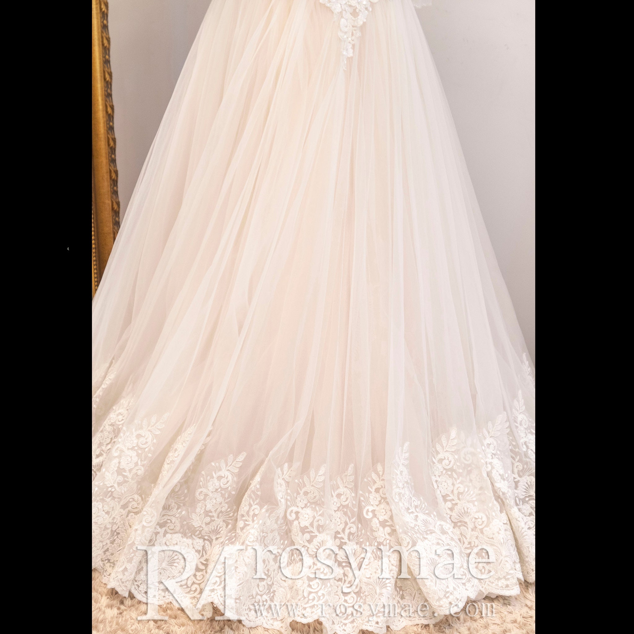 A-line Tulle Lace Wedding Dress with Half Flowy Sleeves
