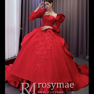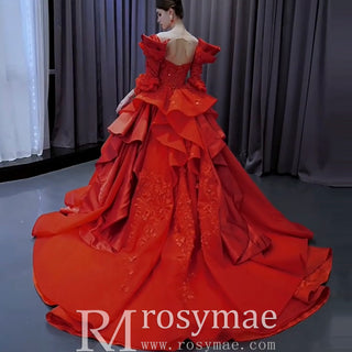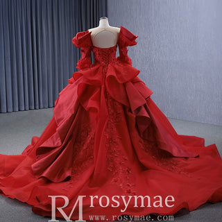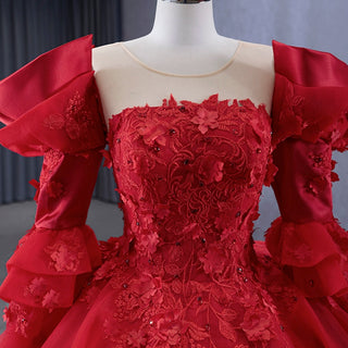 Vintage High-end Ruffles Wedding Dress Puffy 3/4 Sleeve Quinceanera Gown