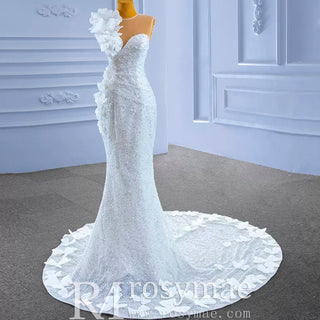 Unique One Shoulder Ruffles Mermaid Bridal Wedding Dress
