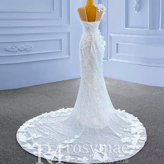 Fairytale Leg Slit Mermaid Wedding Dress with Handmade Flower