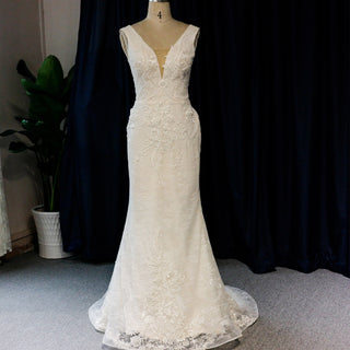 Gorgeous Mermaid Lace Appliqued Wedding Dress with Vneck