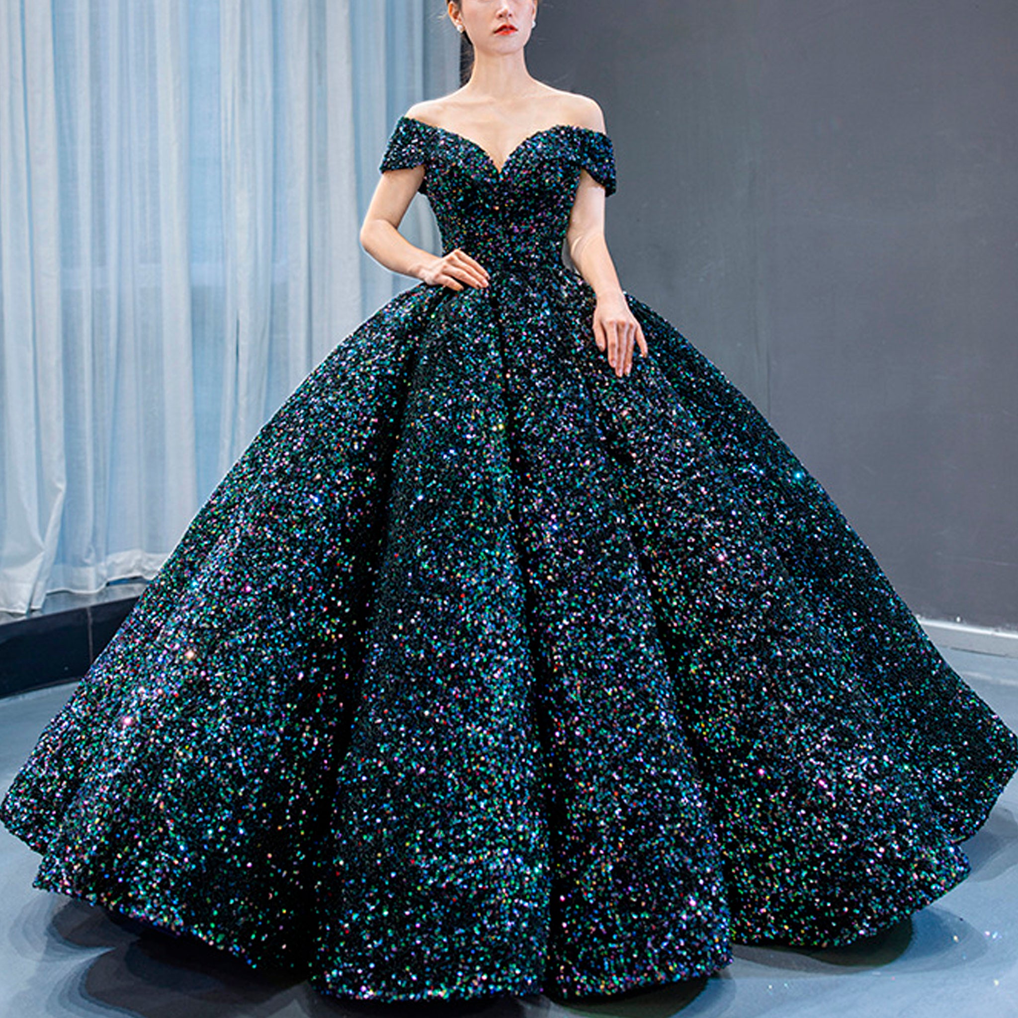 Off Shoulder V Neckline Sparkly Quinceanera Ball Gown