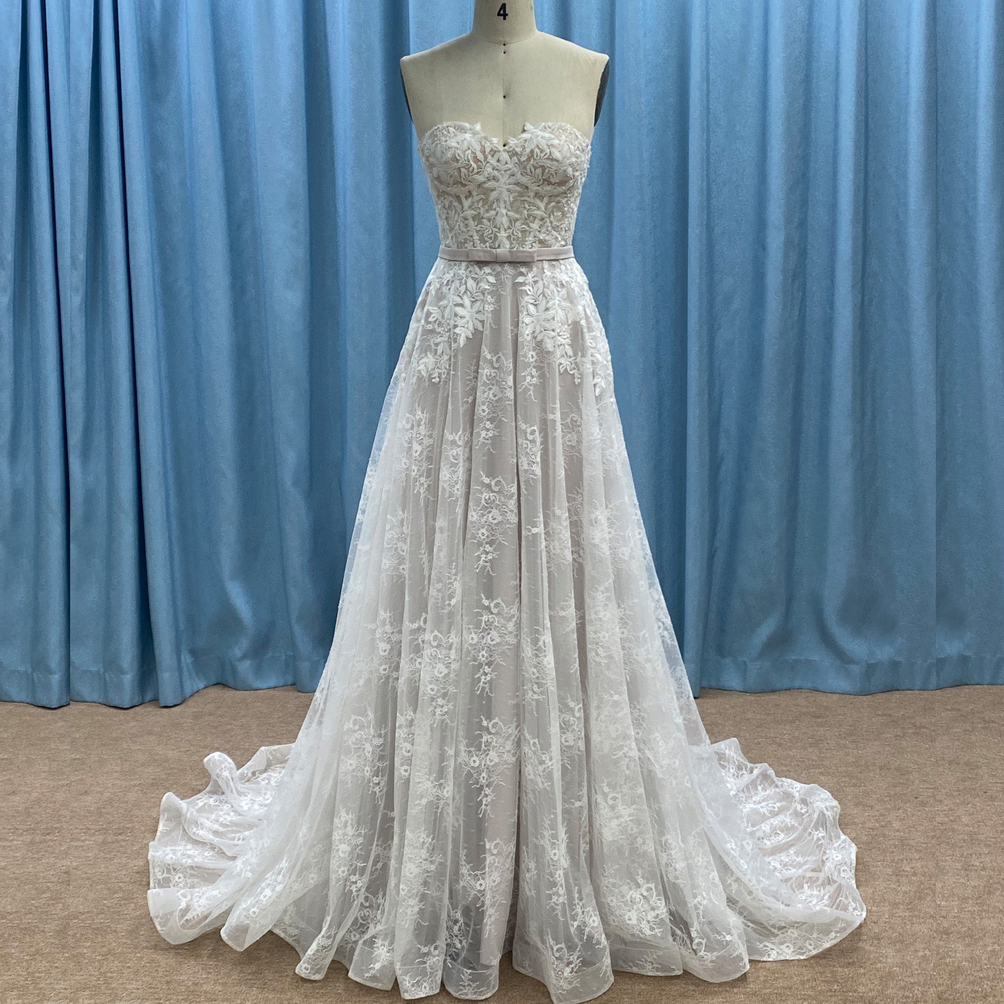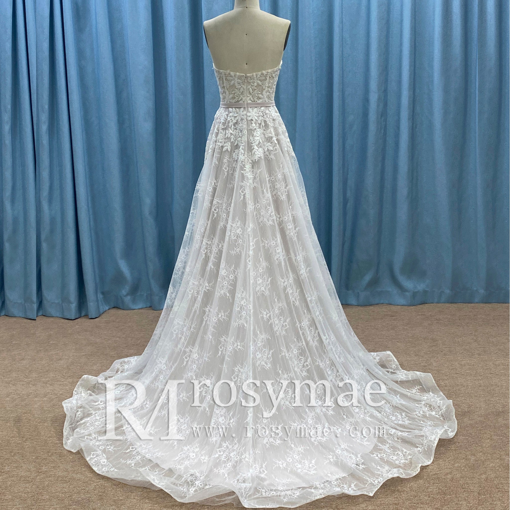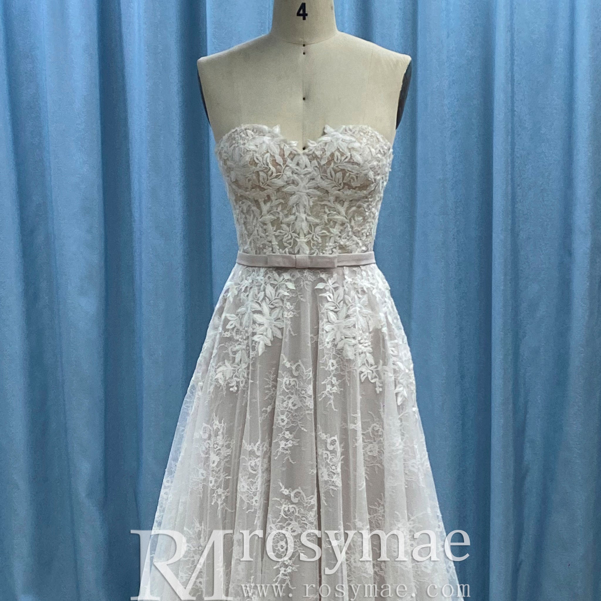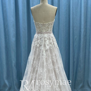 Elegant Strapless Elegant Lace Wedding Dress with Sweetheart Neckline