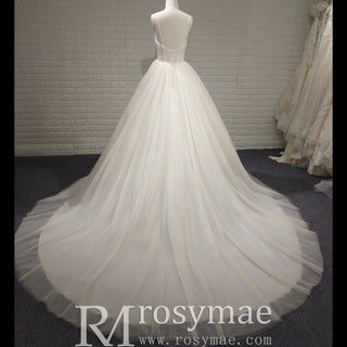 Classic A-Line Spaghetti Strap Ivory Wedding Dress with Sheer Bodice