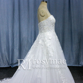 Capture timeless bridal elegance with this vintage-inspired A-line wedding dress. Crafted from luxurious tulle and delicate lace, the gown delivers romantic sophistication with contemporary edge. The sweetheart neckline frames the face beautifully, while the strapless silhouette and graceful low back create a striking focal point. The flowing A-line skirt flatters all body types and moves gracefully down the aisle. Perfect for the discerning bride who values classic design with modern sensibility, this dress balances tradition and individuality for an unforgettable wedding day.