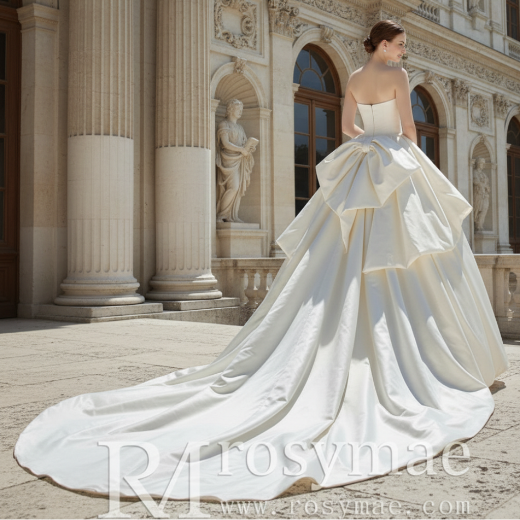 Strapless Satin Ball Gown Wedding Dress Ruffle Skirt Bridal Gown