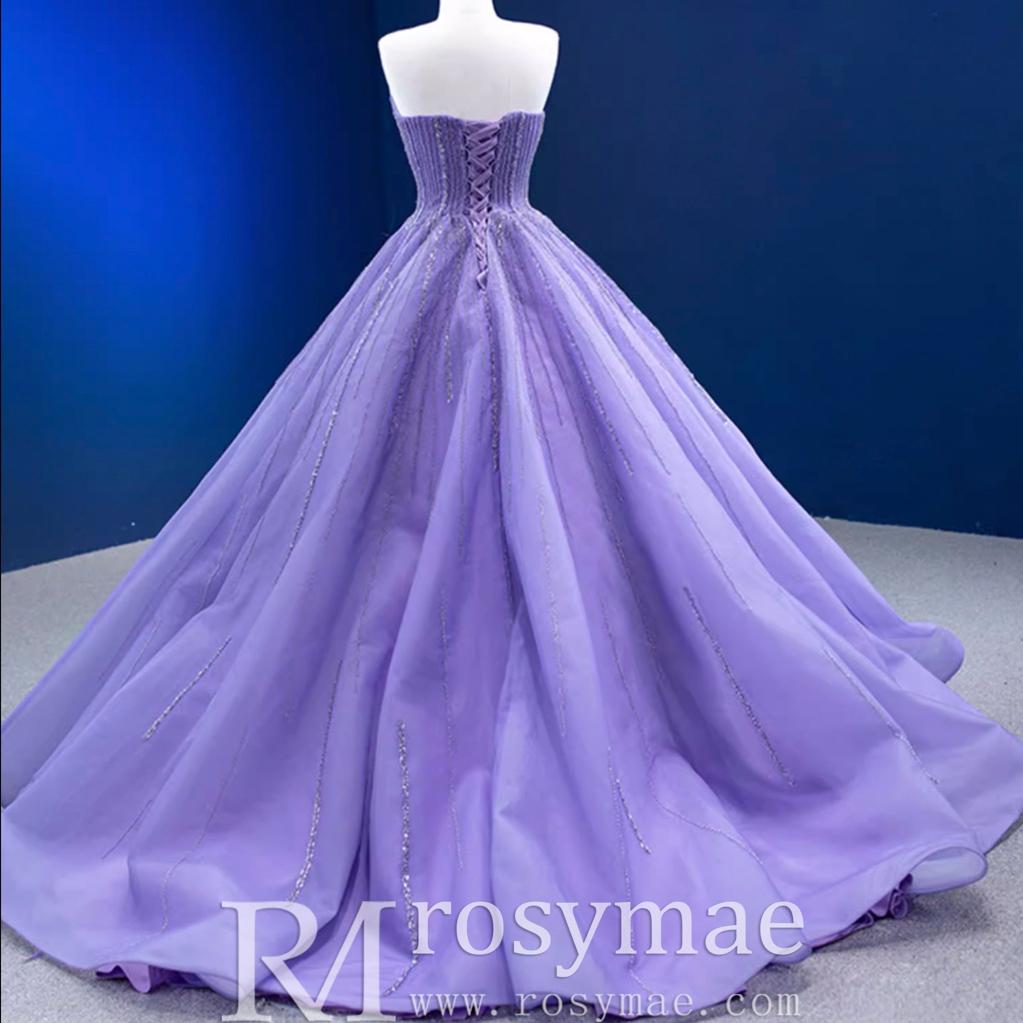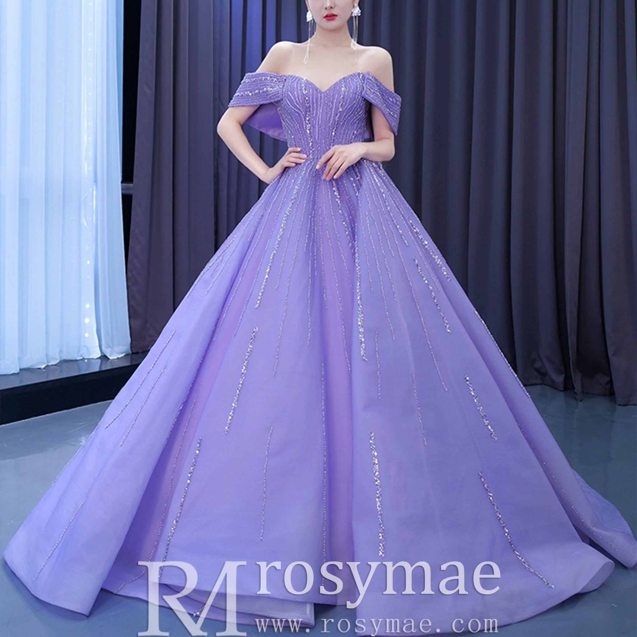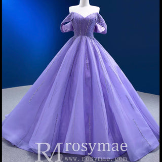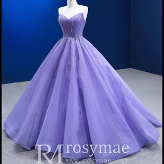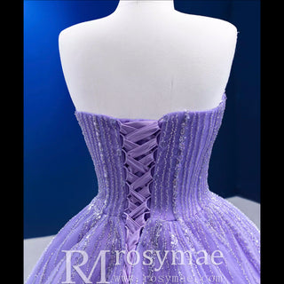 Beaded Lavender Ball Gown Quince Dress with Removable Sleeves