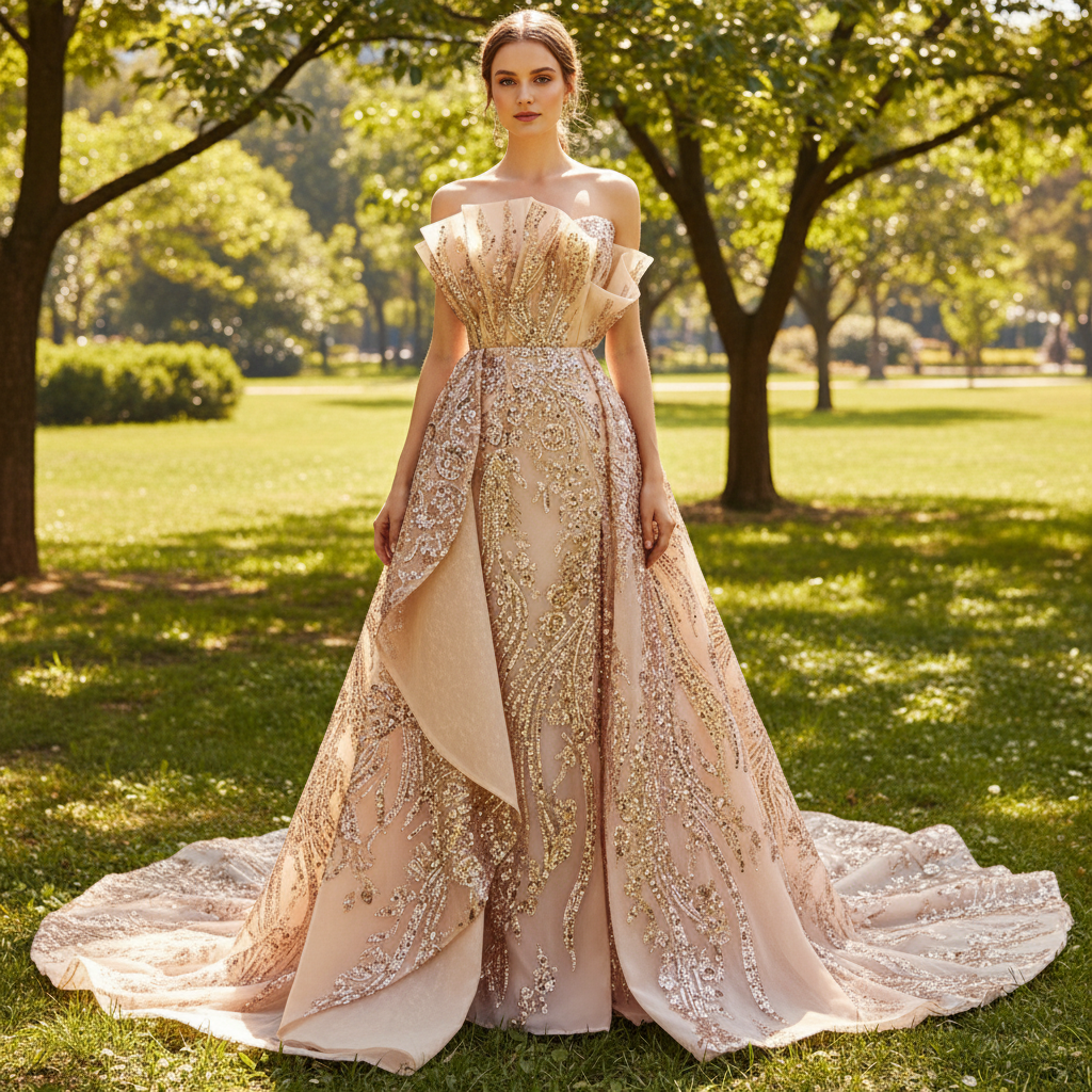 A Golden Vision: Handcrafted Sequin Gown for Unforgettable Moments