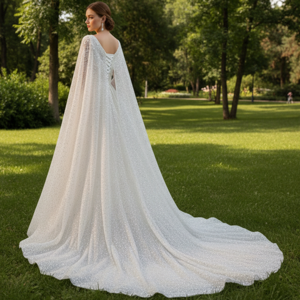 Modern Enchantment: The Sheer Cape Sleeve Gown