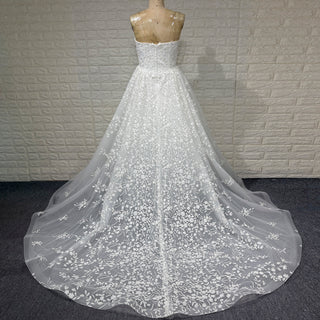 Classic & Elegant White Floral Lace Bride Dress Strapless Wedding Dresses