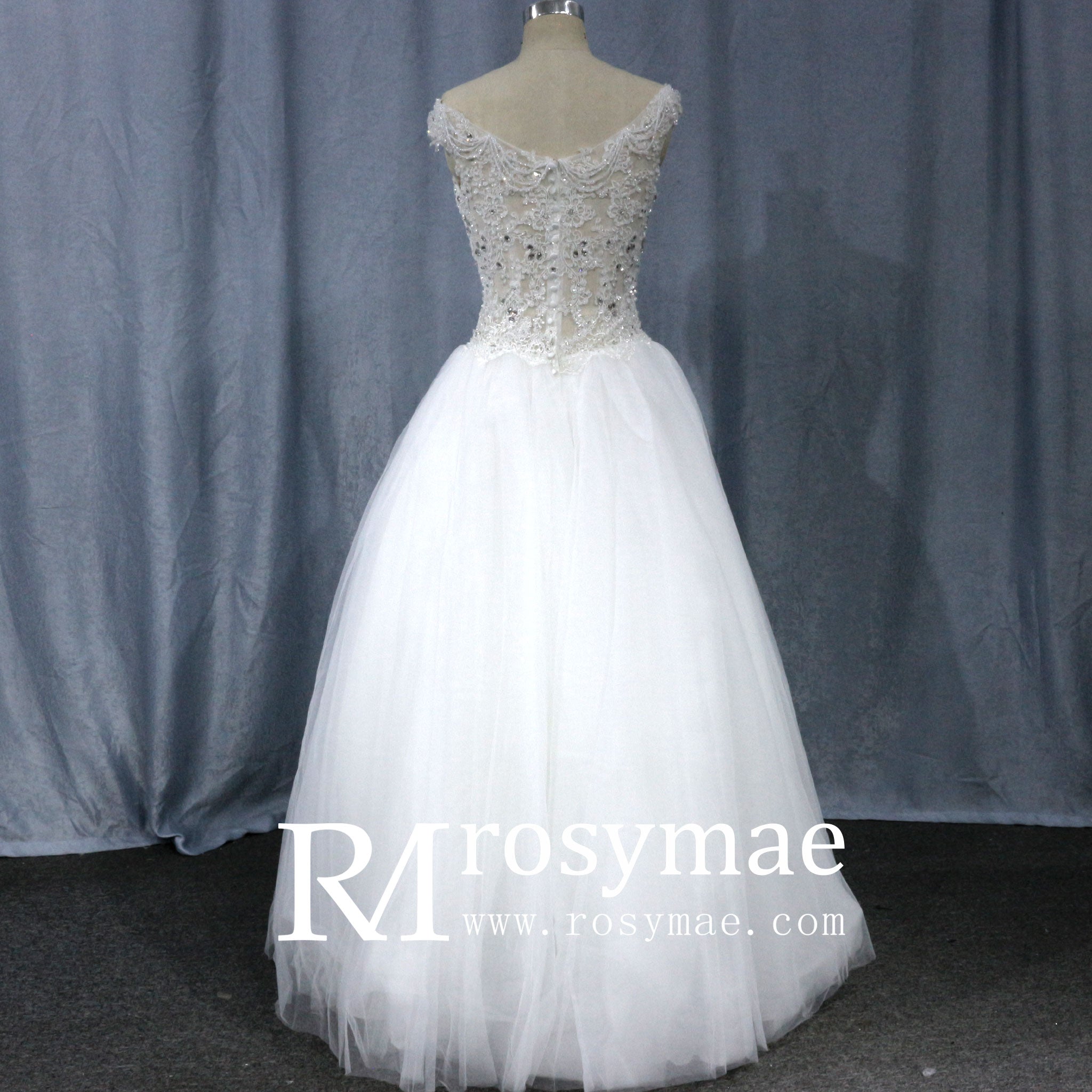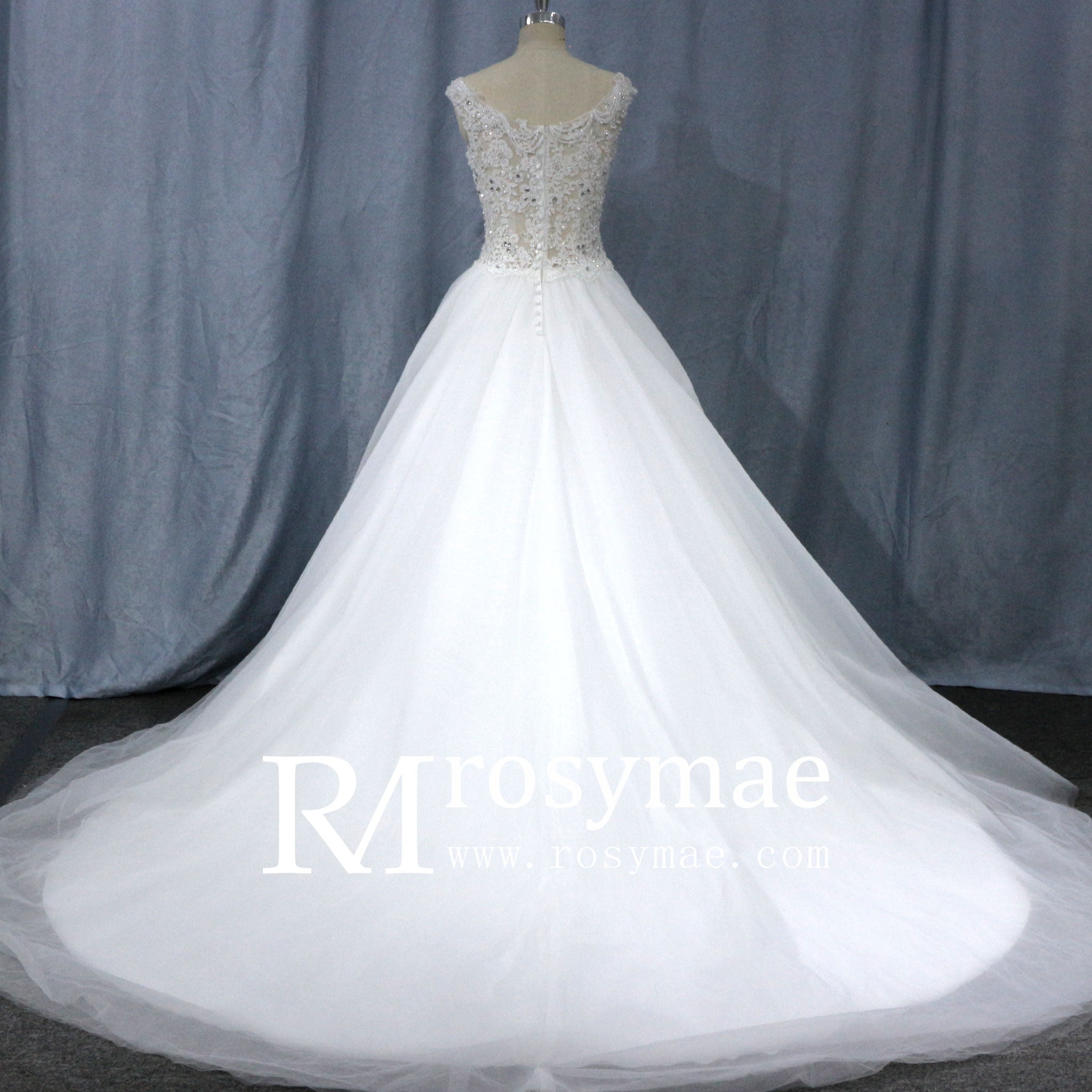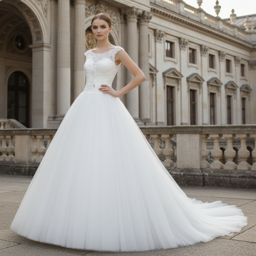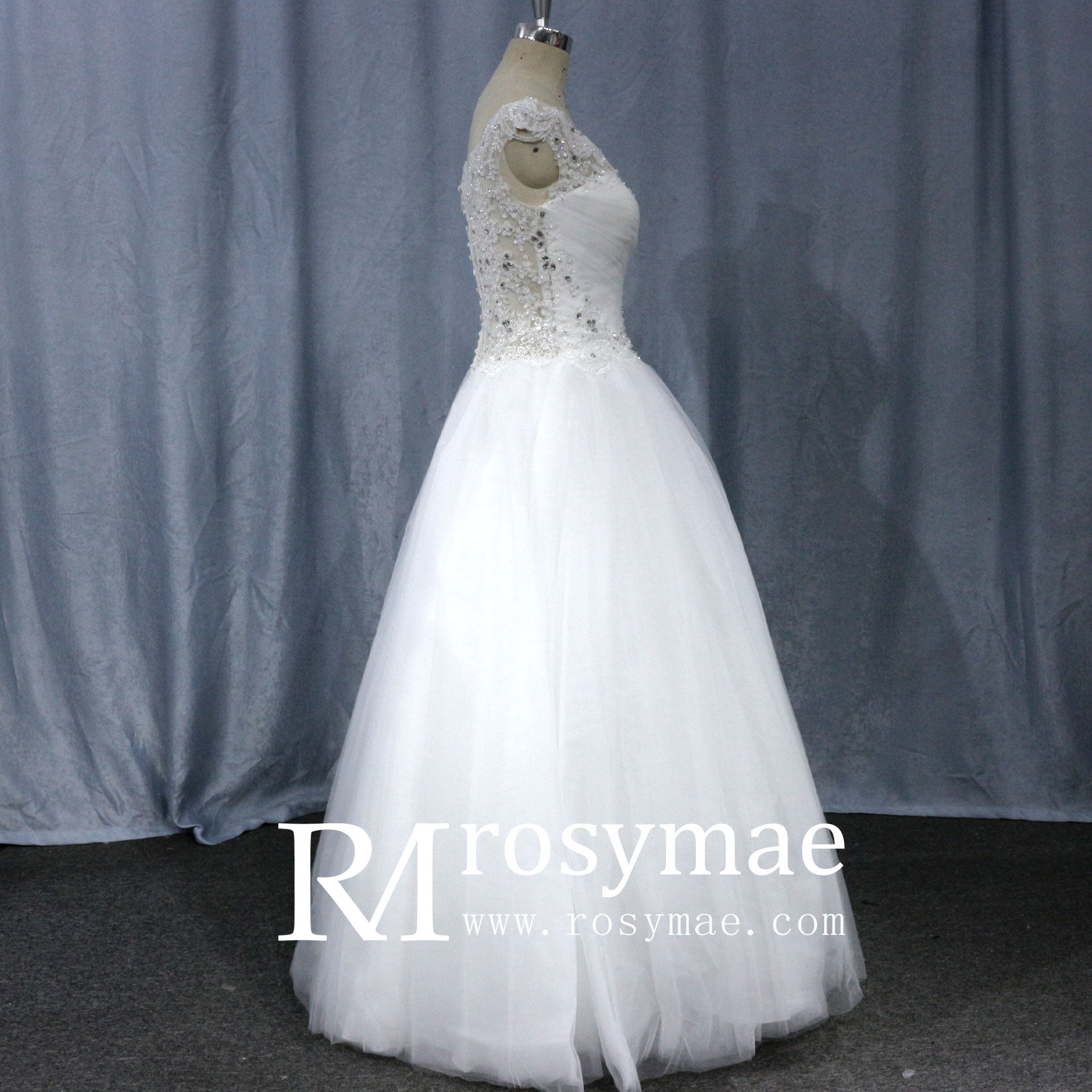 Tulle Cap-sleeve Empire Wedding Dress With Sheer Back