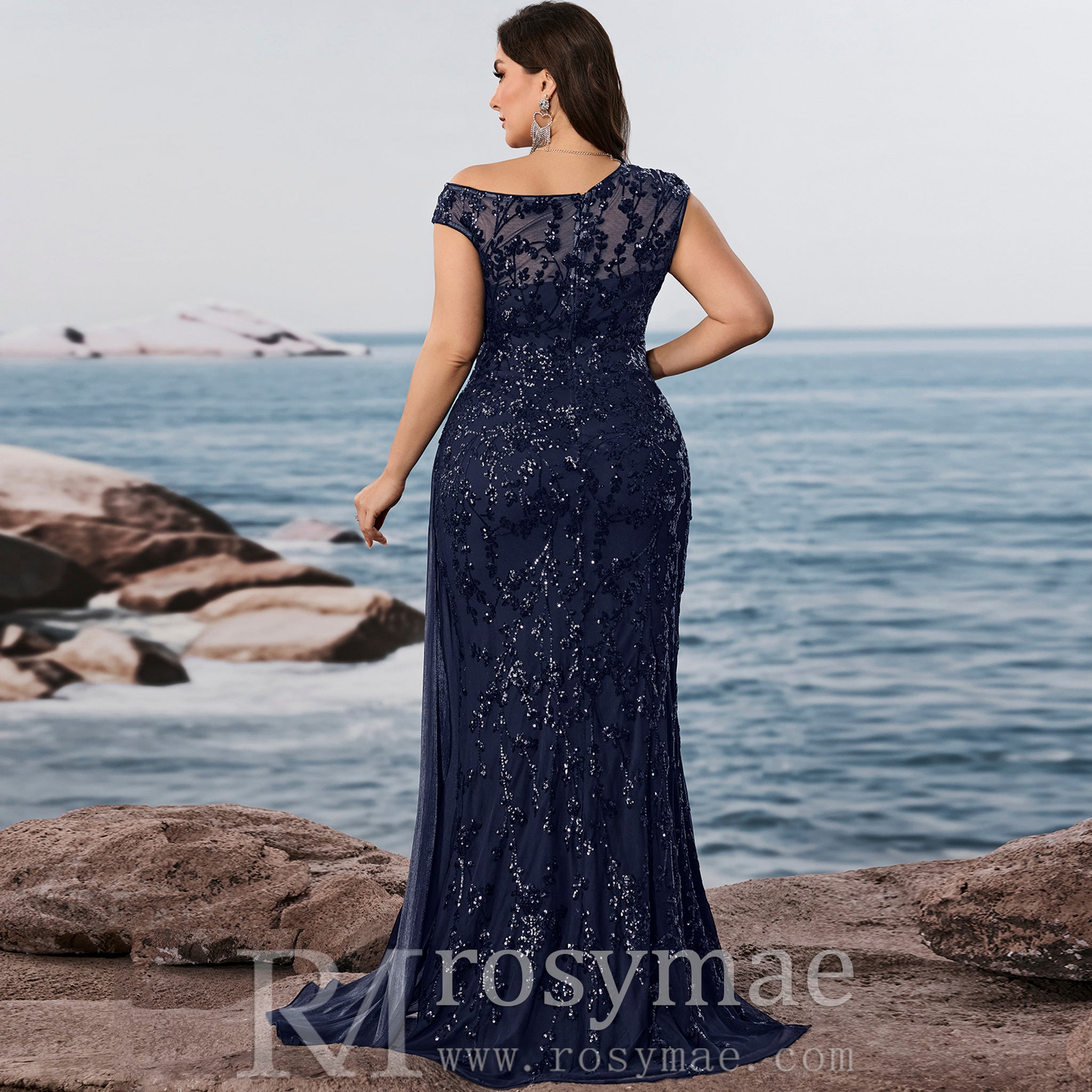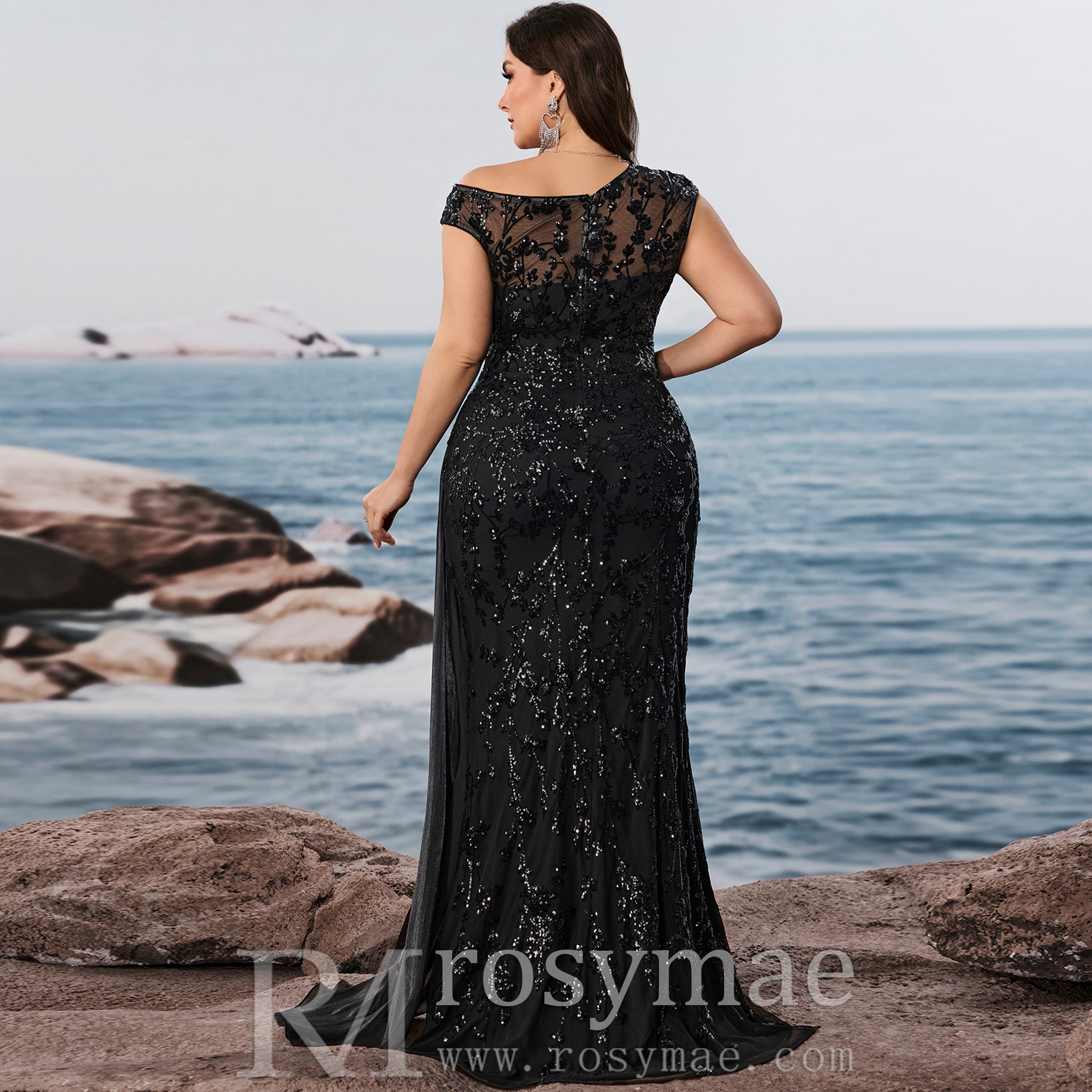 Plus Size Sequins Patchwork Formal Evening Dress Mermaid Party Gowns