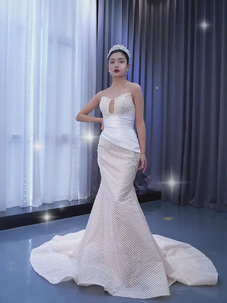 High-end Pearls Mermaid Wedding Dress with Detachable Sleeve