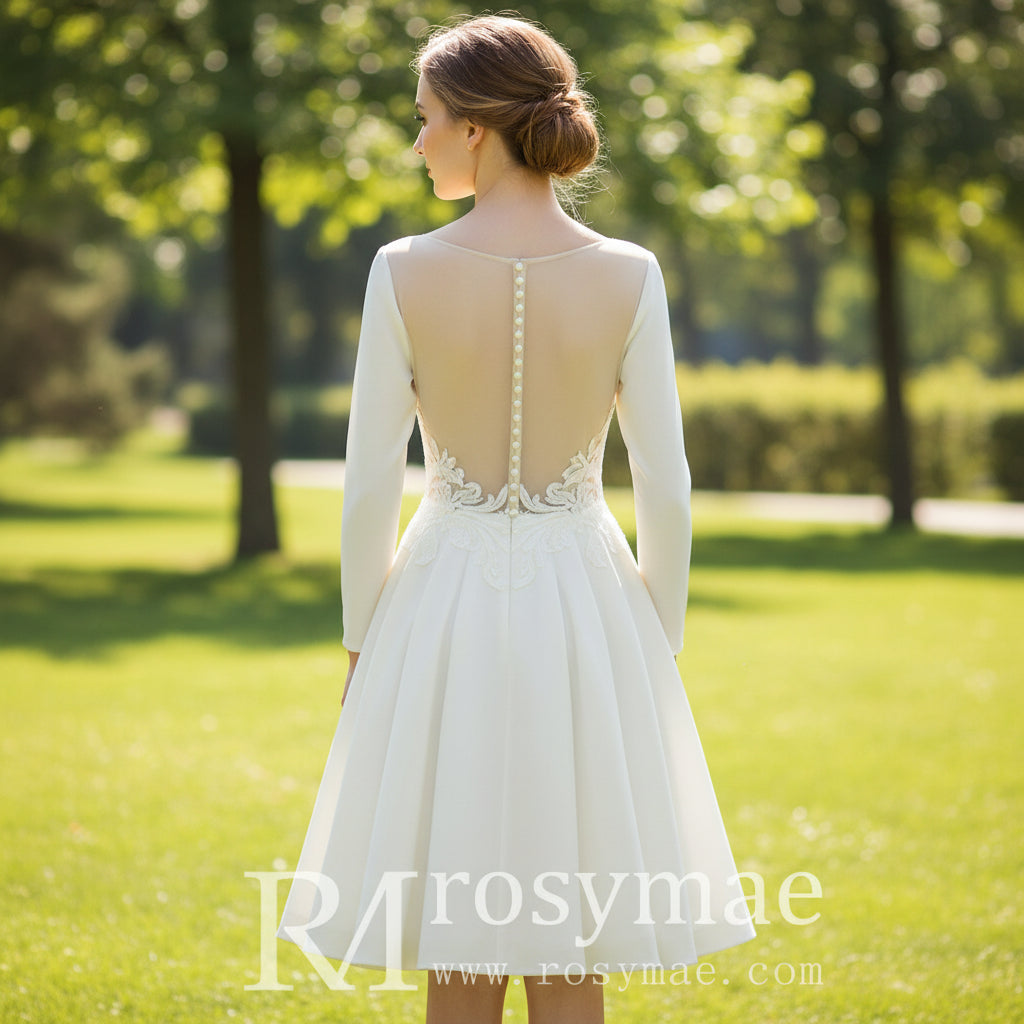 Deep V-neck Informal Long Sleeve Country Knee Length Wedding Dress