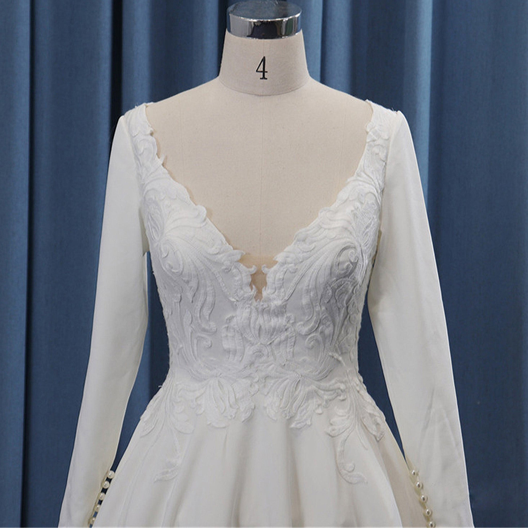 Embrace effortless elegance with this romantic country wedding dress, expertly crafted for the modern bride seeking understated sophistication. Featuring a flattering deep V-neckline and graceful long sleeves, this tea-length design strikes the perfect balance between casual charm and refined style. The soft satin fabric drapes beautifully while delicate lace appliqués add texture and visual interest without overwhelming the silhouette. Ideal for beach ceremonies, garden celebrations, or intimate outdoor venues, this dress moves seamlessly from ceremony to reception. The knee-length cut offers practical comfort and freedom of movement, making it an excellent choice for brides who prioritize both beauty and wearability. Whether you're planning a relaxed seaside affair or a countryside celebration, this versatile piece delivers timeless appeal with contemporary flair.