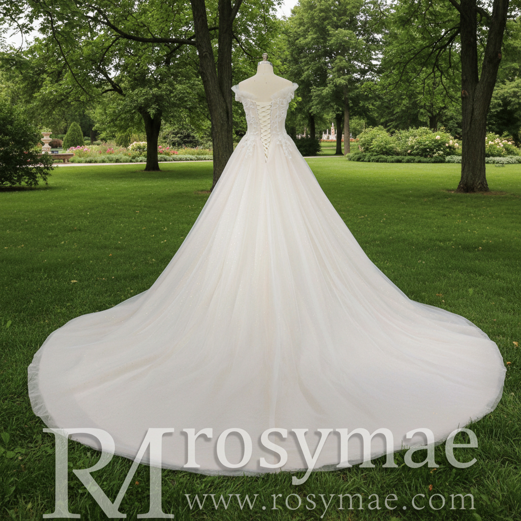This elegant wedding dress exemplifies timeless bridal sophistication through its expertly constructed design. The luxurious shiny tulle foundation provides a voluminous, graceful silhouette that captures light beautifully, while intricate lace appliqué detailing adds refined texture and romantic dimension to the bodice and skirt. The princess-cut silhouette flatters a variety of body types, creating an elongated, flattering line that photographs beautifully for your special day. High-quality materials ensure durability and comfort throughout extended wear, allowing you to move with confidence during your ceremony and reception. The timeless aesthetic transcends seasonal trends, making this piece a cherished keepsake for years to come. Whether you envision a classic ballroom celebration or an intimate garden ceremony, this dress adapts seamlessly to your vision while maintaining an air of understated elegance and grace.