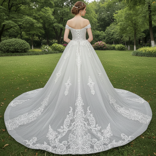 Handmade Off-the-Shoulder Floral Lace Wedding Dress with Vneck