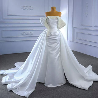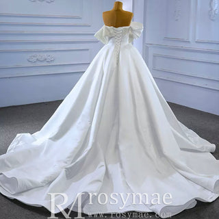 The voluminous ball gown skirt, crafted from layers of premium tulle and satin, creates a fairytale silhouette that flows into a subtle sweep train. Designed with a supportive corset back, this gown ensures a flawless and comfortable fit, allowing you to move with confidence and grace throughout your celebration. Perfect for the bride seeking a look that balances classic romance with regal grandeur, this luxurious gown will make you feel like royalty on your most cherished day.