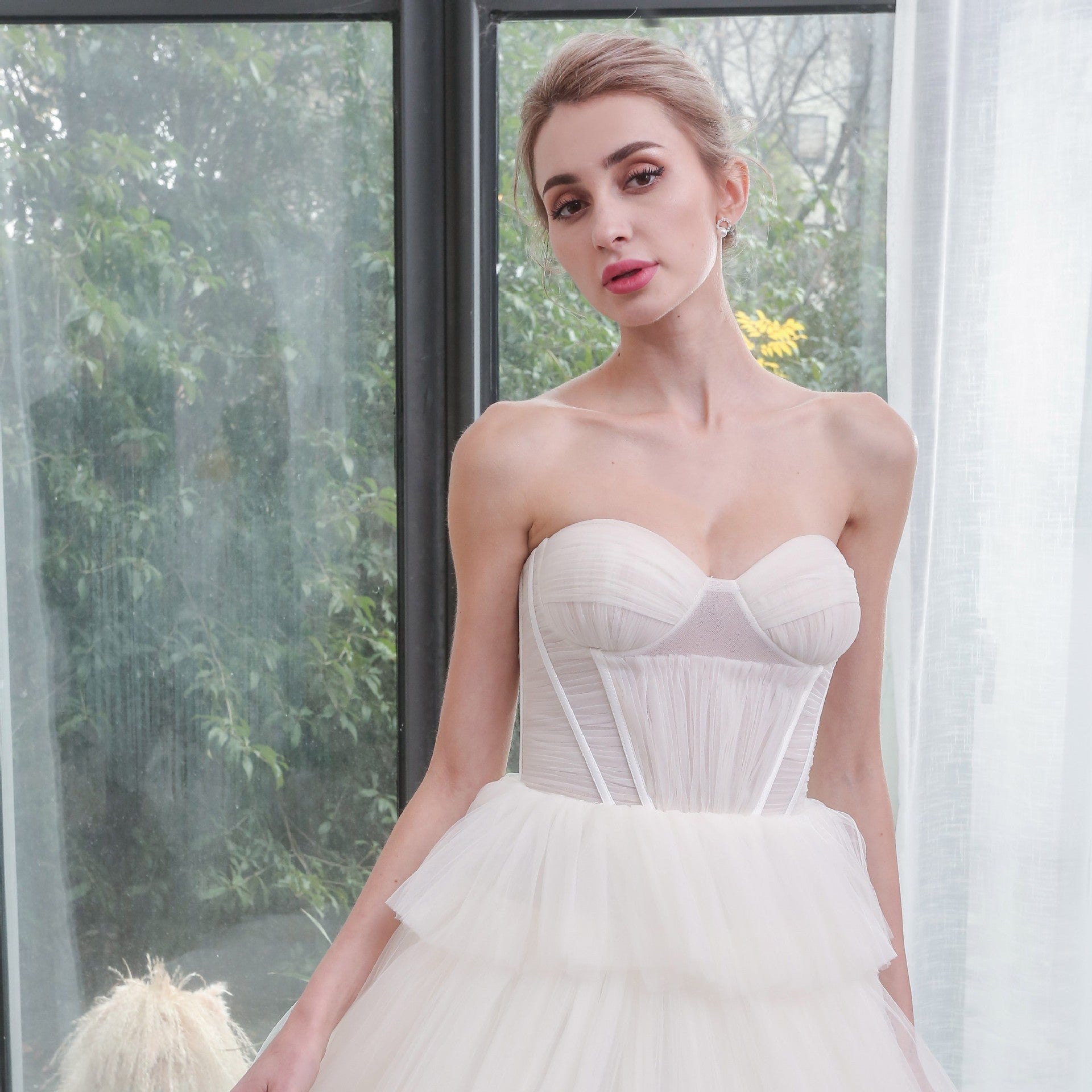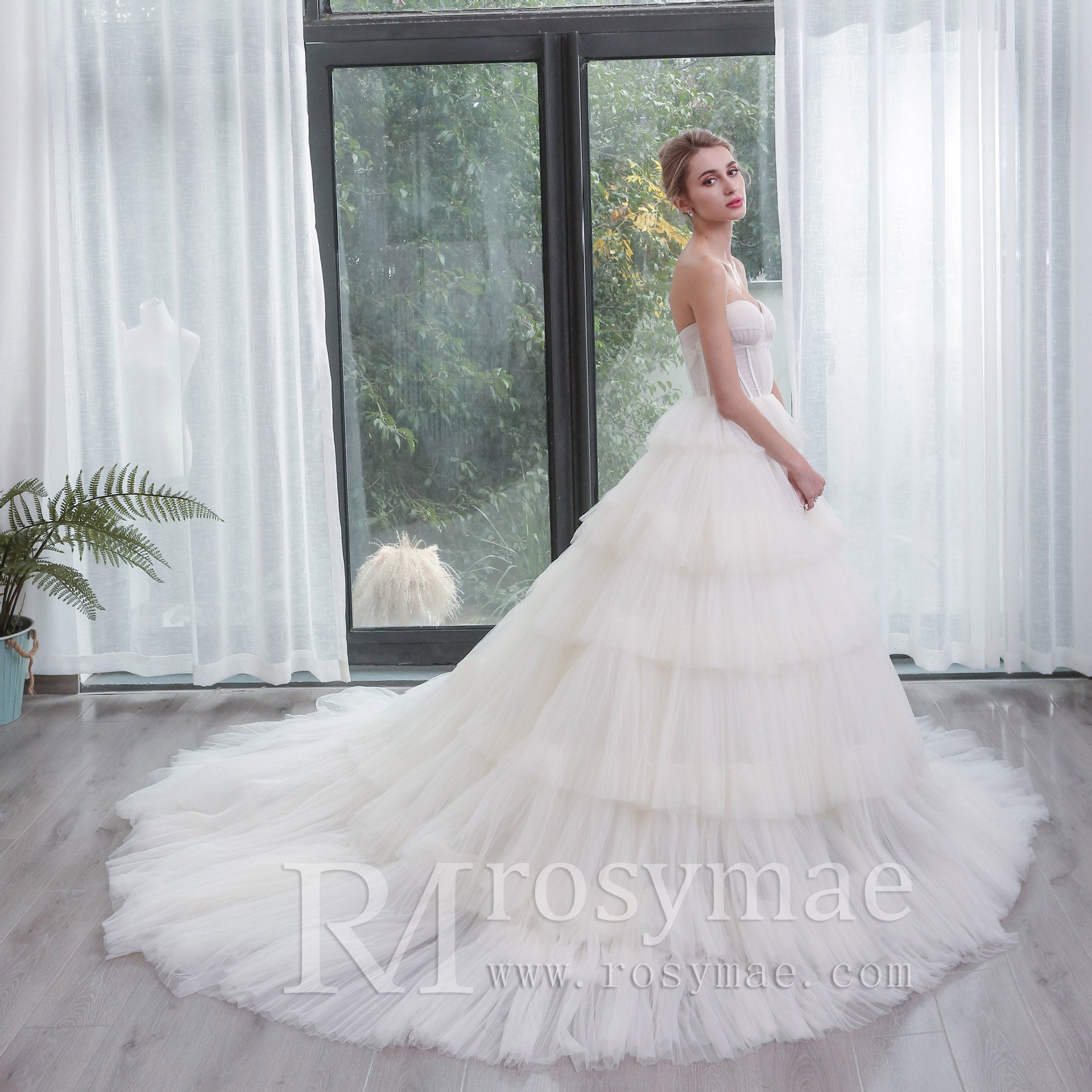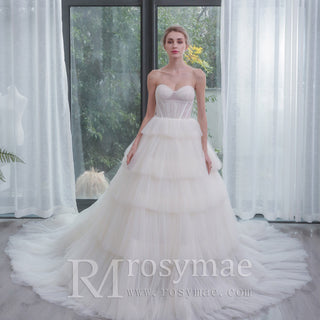 Strapless Sweetheart Ball Gown Layered Tulle Skirt Wedding Dress