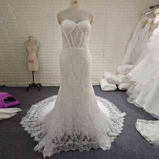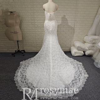 Classic A-line Floral Lace Wedding Dress with Spaghetti Strap for Women