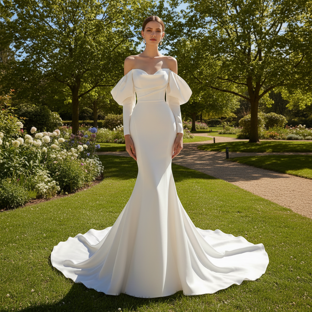Satin Mermaid & Trumpet Wedding Dresses with Detachable Sleeve
