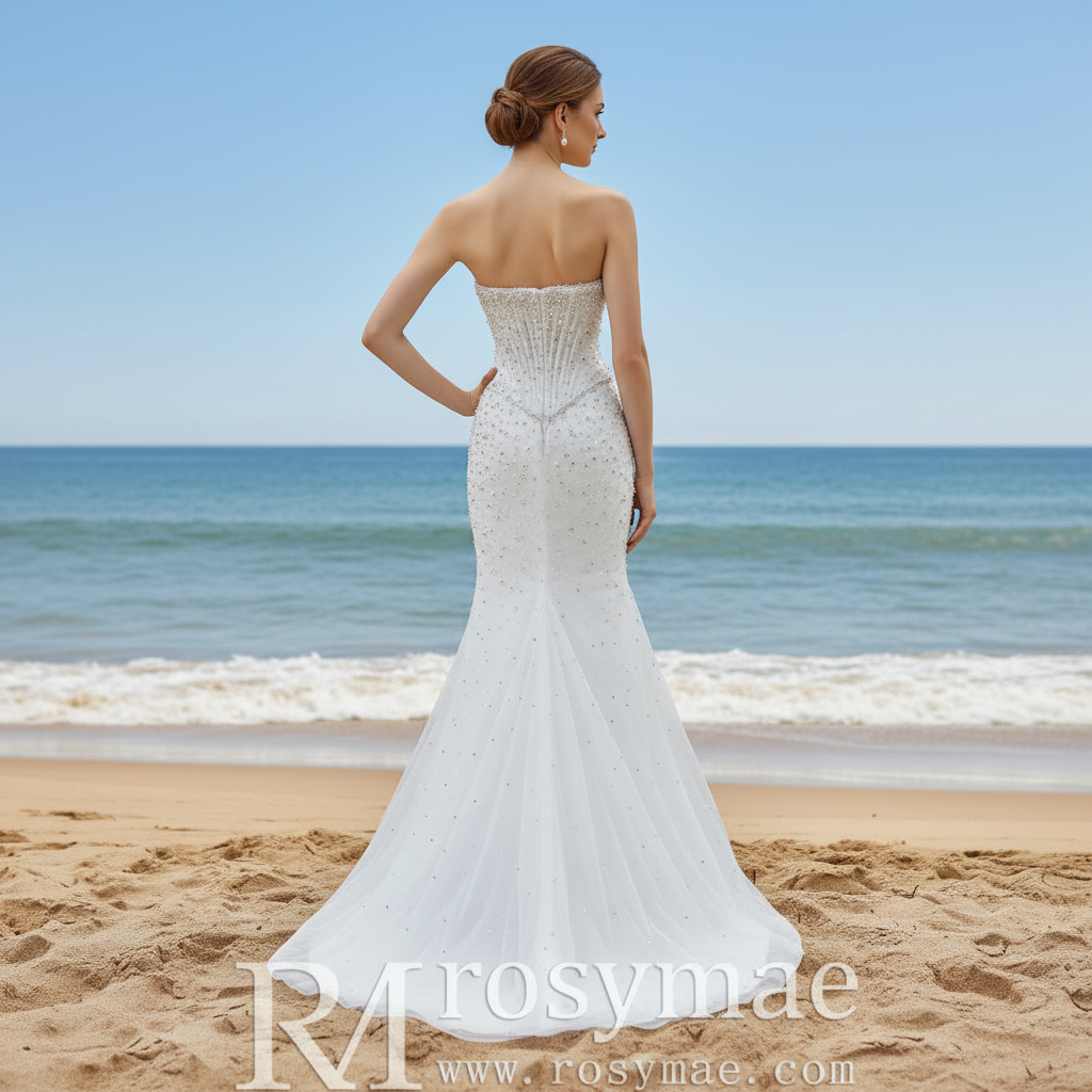Every bride deserves a moment of transformation. Enter a gown designed for the modern romantic who dreams of walking down the aisle in a show-stopping ballgown, but longs to dance the night away in a sleek silhouette. This stunning mermaid wedding dress is a masterpiece of intricate artistry, featuring a bodice and skirt lavishly adorned with shimmering beads and luminous pearls that catch the light with every step.