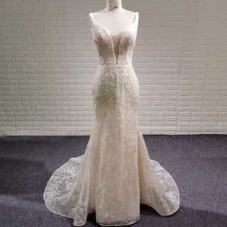 Romantic Mermaid Lace Princess Wedding Dresses with Long Sheer Sleeves